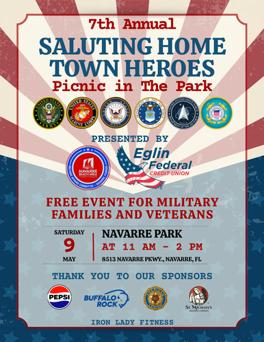 The Navarre Beach Area Chamber of Commerce Military & Veteran Affairs Committee will host the 7th Annual Military Appreciation Picnic, “Saluting Hometown Heroes,” on Saturday, May 9, 2026, from 11 a.m. to 2 p.m. at Navarre Park, 8513 Navarre Parkway.