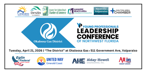 Hosted by the Crestview Area, Destin, Greater Fort Walton Beach, Navarre, Niceville-Valparaiso, and Walton Area Chambers of Commerce, the Young Professionals Leadership Conference of Northwest Florida unites emerging leaders from across Northwest Florida for a day of inspiration, leadership insights, and meaningful networking.
