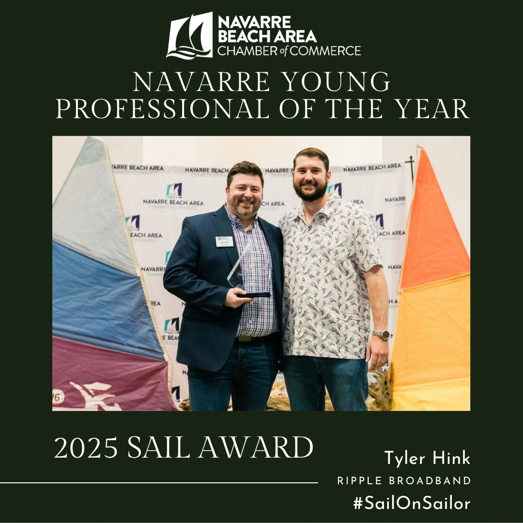 Please join us in congratulating the 2025 SAIL Award for Navarre Young Professional of the Year: Tyler Hinks, Ripple Broadband!The mission of the Navarre Young Professionals is crystal clear – we exist to empower, connect, and uplift the diverse young talent in Navarre.
